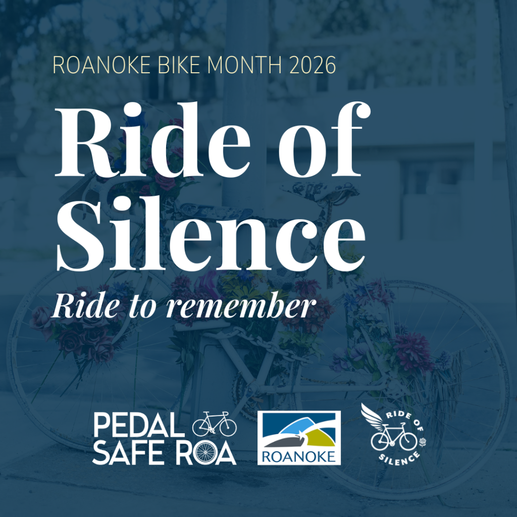 PedalSafe ROA is honored to host the 2026 Roanoke Ride of Silence alongside the City of Roanoke on Wednesday, May 20 at Market Square. This year’s honorary ride chair is Roanoke City Mayor Joe Cobb.