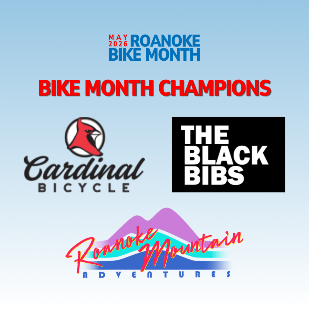 A huge thank you to Roanoke Mountain Adventures, Cardinal Bicycle, and The Black Bibs for sponsoring this year’s Bike Month!